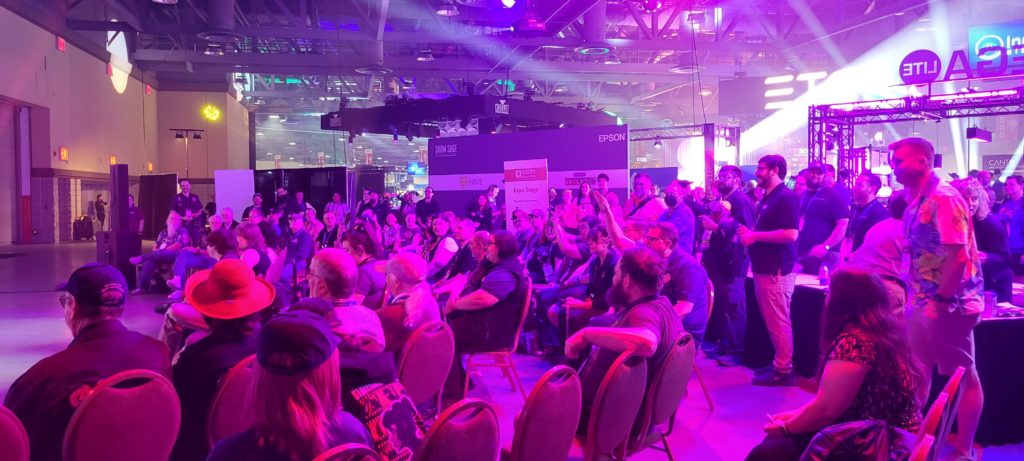 Raffle prizes included a $250 Visa gift card from Barbizon (Lori Baruch); the Blizzard Cable Guy cable tester from Blizzard Lighting (Mcloud Benson); a full conference pass to the 2026 Midwest Rigging Intensive from ESTA (Becky Roper); a BTS private virtual MHFA training from HuneyBadger Entertainment Consulting (Helen A. Raymond); a Nespresso CitiZ espresso machine with Aeroccino milk frother and capsule variety pack from InterAmerica Stage (Rebecca Knipfer); a Ghostlight from Monkey Wrench Productions (Aluaro Nunez); an ETC Nomad Education Edition with Gadget II from Musson Theatrical (Mcleoud Benson); a SONOS Roam 2 ultra-portable smart speaker from Sapsis Rigging (Abel Ortiz); a 2027 full conference registration from USITT (Mike Meservey); and the grand prize, a Vectorworks Spotlight annual subscription (Sam Mollner).